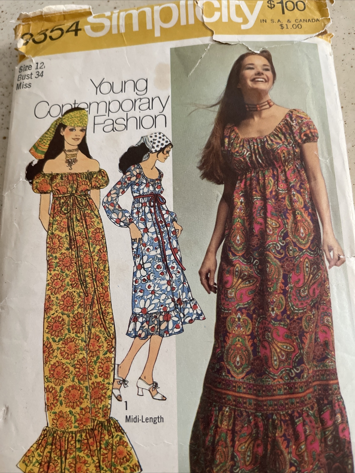 Vtg 1970s Simplicity Sewing Pattern 9354 Boho Hippie Misses Dress Sz 12 Bust 34 Ebay