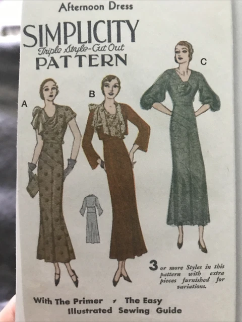 Early 1930s Original Vintage Pattern For A Dress With 3 Style Sleeves Adult Size B34 Simplicity 1195 Another Time Vintage Apparel And Other Fine Delights